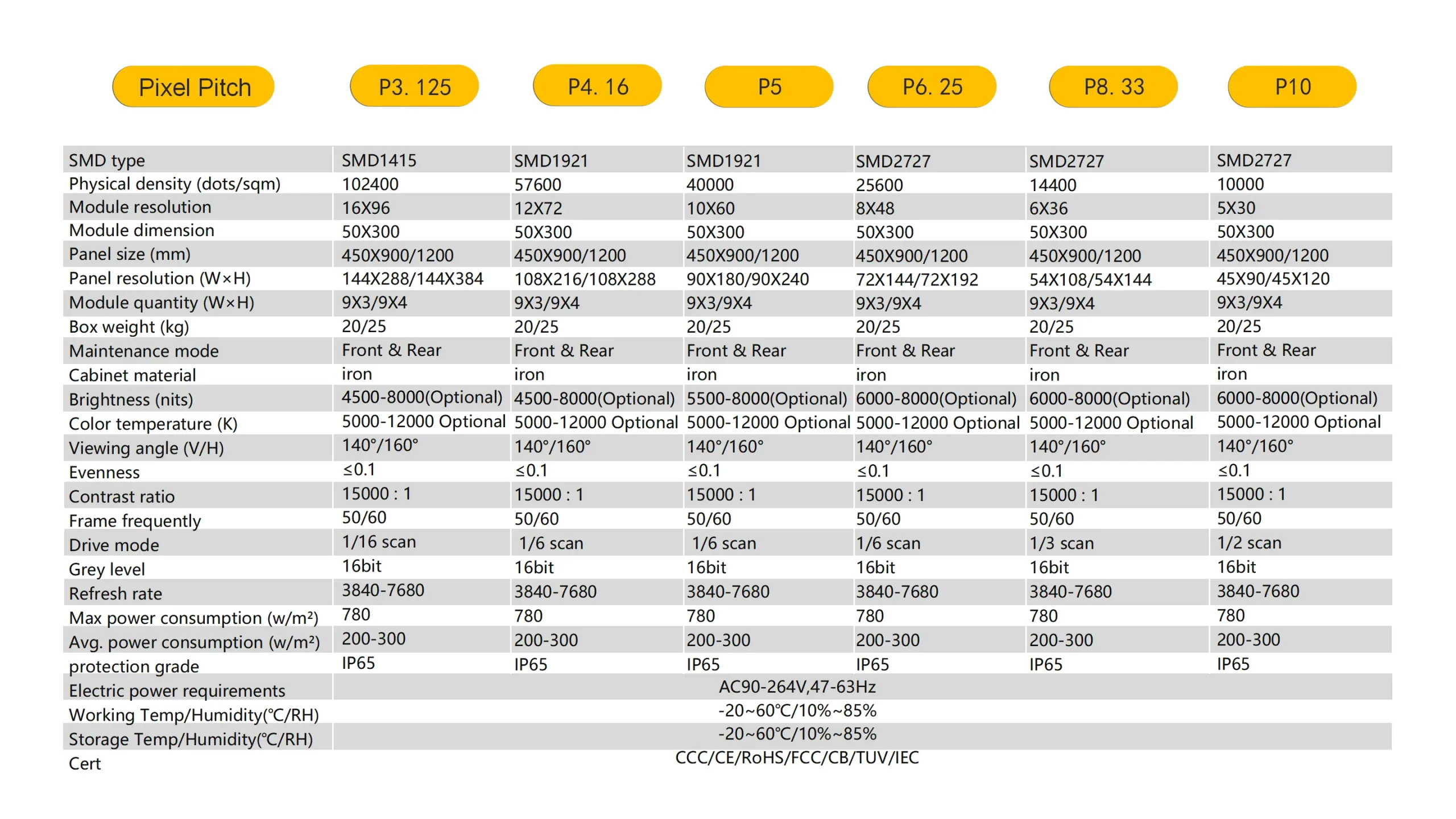 P3.125/P4.16/P5/P6.25/P8.33/P10