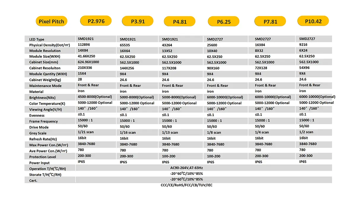 Model: P3.91/P7.81/P5/P10.42 (Cabinet Size: 562.5×1000mm)